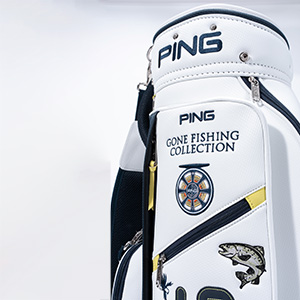 刺繍のフィッシングアイコンがネイティブ感満載“GONE FISHING”とは休暇を表す言い回しで、ゴルフ三昧の休暇を過ごすゴルファーに使ってもらいたいシリーズです。