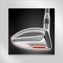 3番ウッドで約19cc、9番ウッドで約5ccヘッドサイズを大型化。慣性モーメントを増大させることでフェース面のふらつきを防いでくれます。またアドレス時には、クラウン部にデザインされた三日月形のグラフィックとボールを重ね合わせてみて下さい。残像効果を利用してスムーズにテイクバックできるはずです。