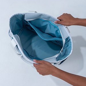 抜群の収納力と、汚れに強い持ち手。独立したシューズインポケットと計7つのポケットを備えた、使い勝手の良いカジュアルトートバッグ。