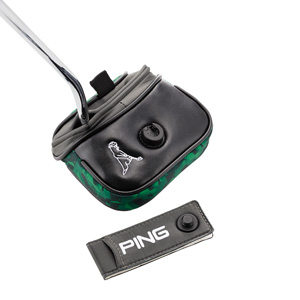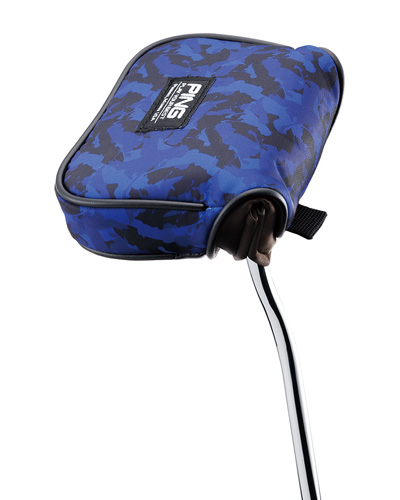 シャフト位置を問わず使えるのが便利。開口部が特殊な作りになっており、シャフト位置を問わず装着できる非常に便利なパターカバー。柄はPINGのマスコットキャラクターである「Mr.PING」をカモフラージュ柄にあしらったもの。