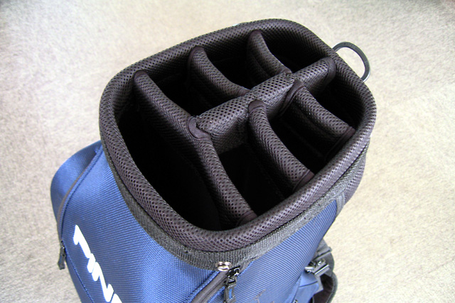 乗用カート用に設計された多機能モデル。スタイリッシュなデザイン。ツアースタッフバッグと同じ8個のポケットにクラブの出し入れが簡単な7分割トップ。これだけの機能を持ちながら価格は超リーズナブル(税込14,280円)。2006年10月発売のエクスプロアを凌ぐ、当店の売上No.1カートバッグです。素材はナイロンなので柔らかな質感(硬くしっかりした皮の質感を好む方にはT9.5やT8.0、ツアースタッフバッグがお勧めです)。