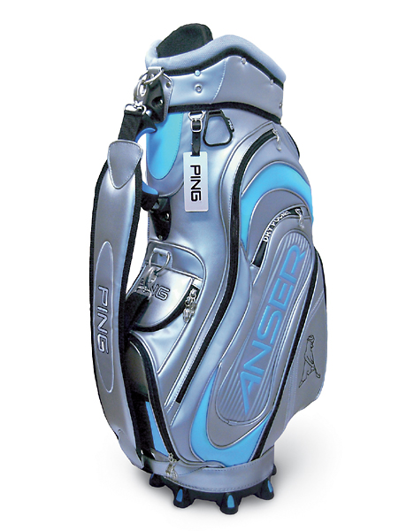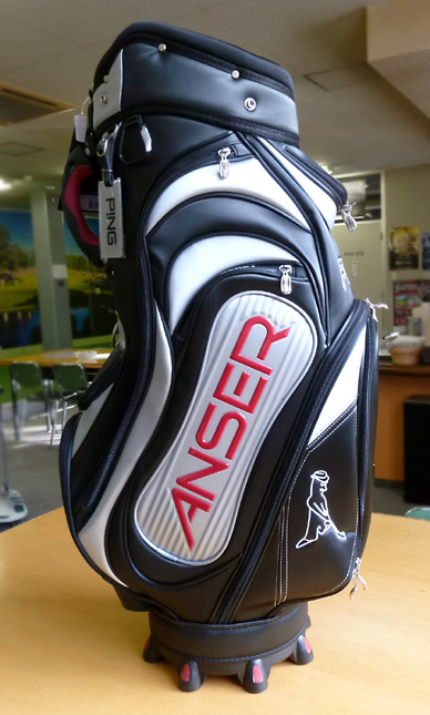 ANSERのロゴを配したハイクラスモデル。日本で先行発売された「アンサーアイアン」のロゴを配した国内オリジナルのカートバッグ。従来のバッグとは一線を画すスタイリッシュなデザインで、ポケット数も9つ(そのうちの一つは防水仕様)と収納力も抜群。お洒落を楽しみたいゴルファーの方にお勧めのハイクラスなカートバッグです。