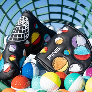 懐かしのツートーンカラーボール時代をイメージ。高品質の3D刺繍とスクリーン印刷が施された、US限定モデルのパターカバー。PINGが昔販売していた2トーンカラーのボールがデザインされており、往年のPINGファン垂涎の一品。